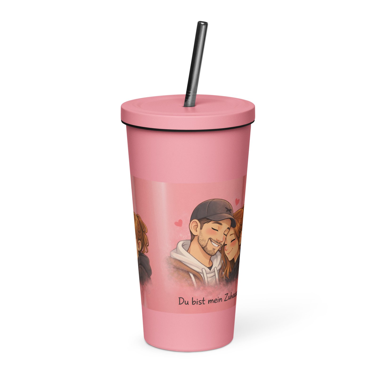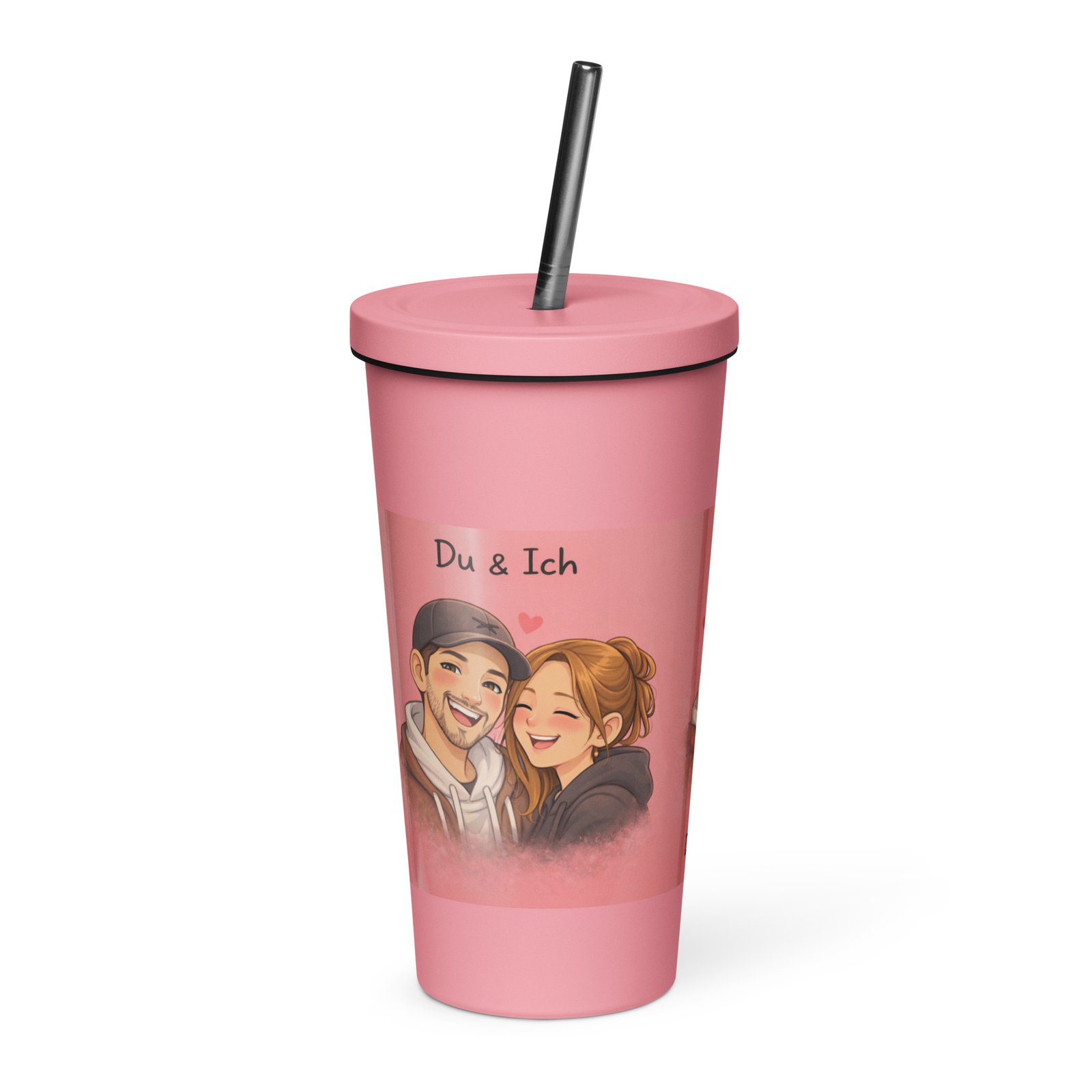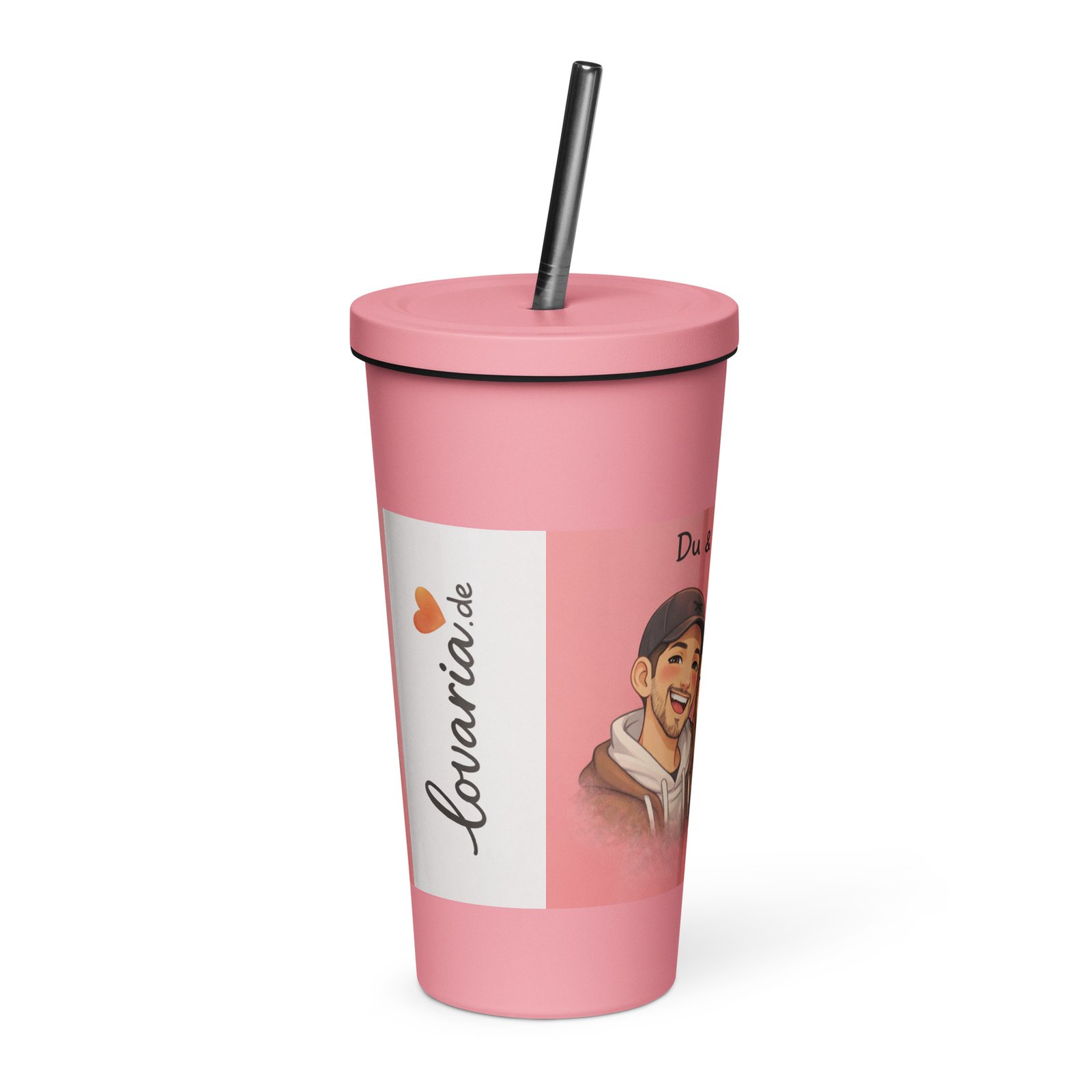 Personalisierter rosa Thermobecher mit Strohhalm