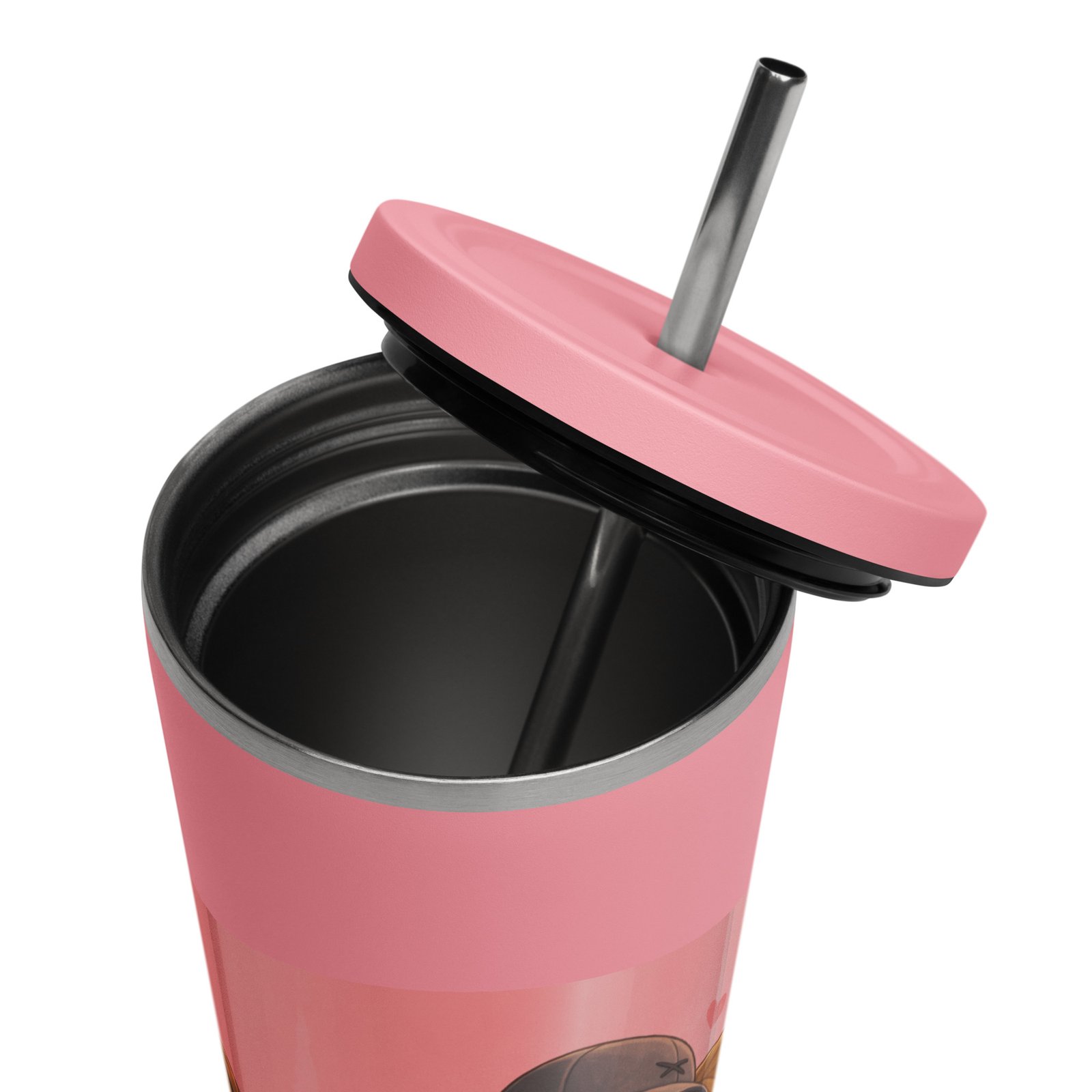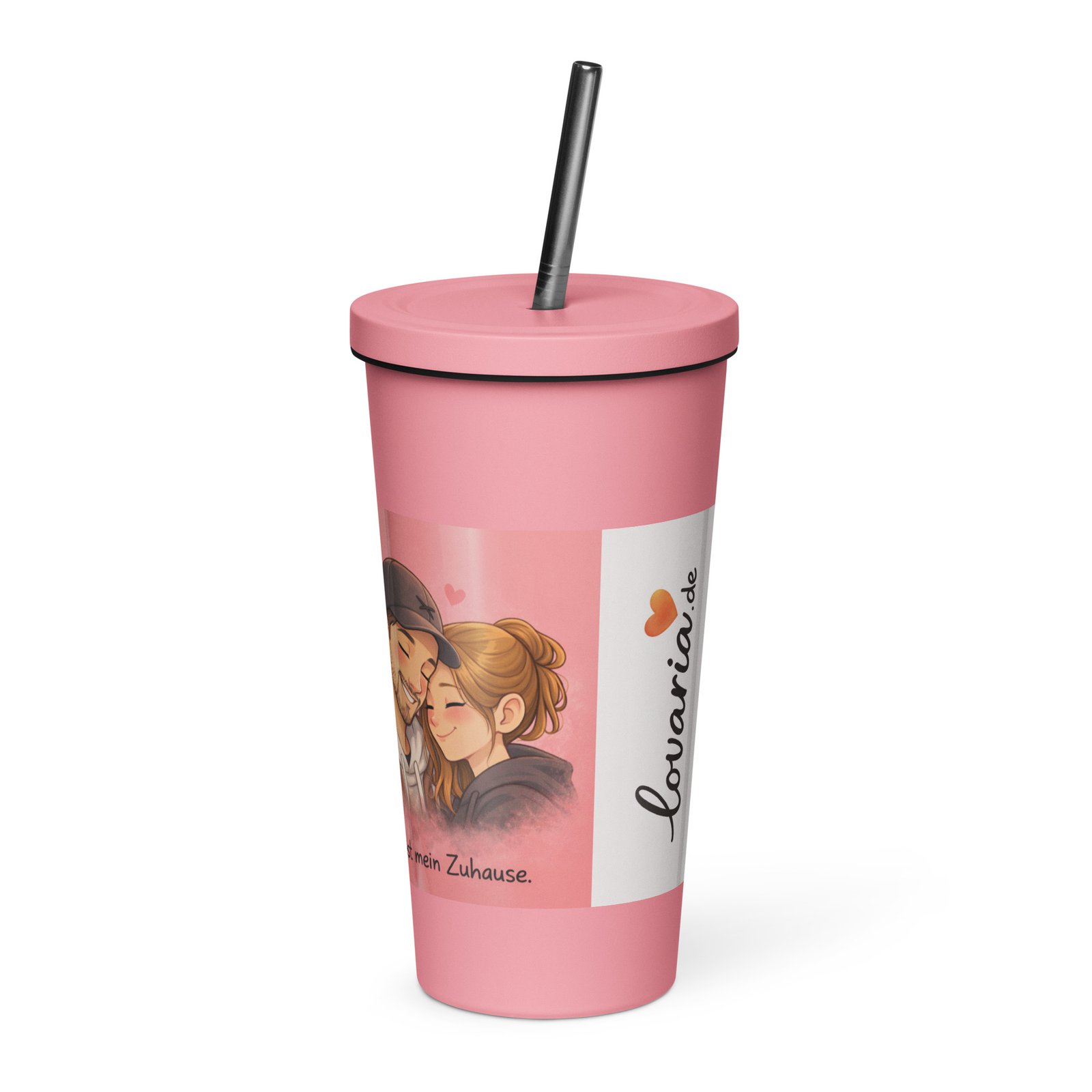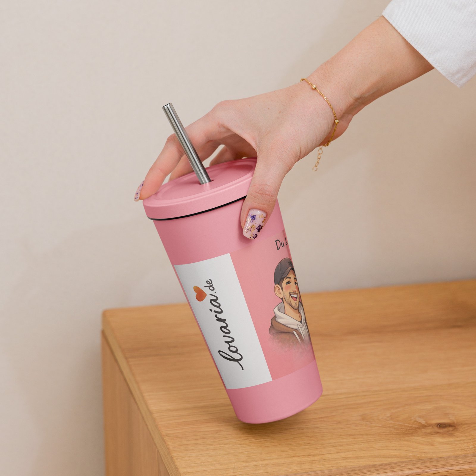 Personalisierter rosa Thermobecher mit Strohhalm